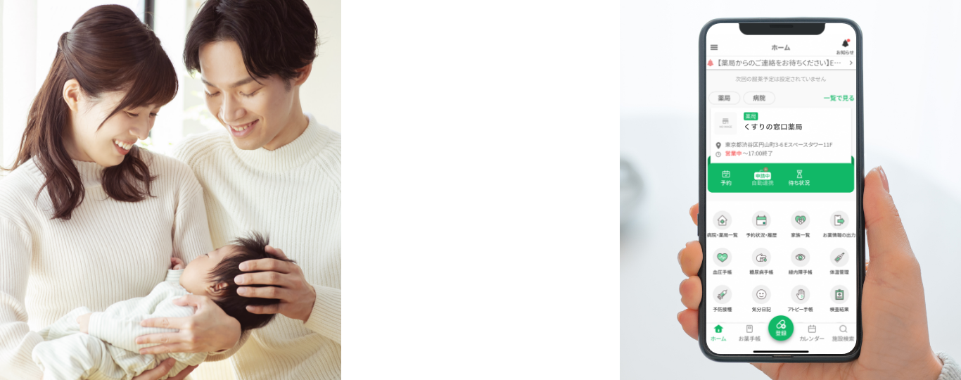 「EPARKお薬手帳」アプリでは調剤の事前予約はもちろん、スマートフォン1台で最大10人のお薬手帳を管理する事もできます。